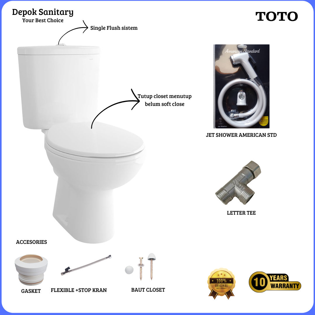 HALLO BOSKUH.. PRODUK 100% TOTO ORIGINAL.. #PENGIRIMAN INSTAN PILIH VARIAN INSTAN (WAJIB) ##PENGIRIMAN KARGO PILIH VARIAN KARGO (WAJIB) KARENA HARUS DPAKING KAYU PEMBELIAN PROYEK DALAM JUMLAH BANYAK HARAP CHAT KA, ADA HARGA KHUSUS. CLOSET DUDUK TOTO CW53J TOILET BOWL SW53JP COVER TCD-01R SEAT COVER. STOP KRAN GASKET FLEXIBLE Dimensi p x l x t 63 x 37 x 72 cm Single Flush (tombol Atas) WARNA PUTIH. PENGIRIMAN HARAP PILIH INSTAN KURIR KA, AMAN DAN LANGSUNG SAMPAI. WAJIB VIDEO UNBOXING SAAT PAKET DITERIMA, UNTUK MEMPERMUDAH PROSES KLAIM, JIKA TERJADI HAL-HAL YANG TIDAK DIINGINKAN. KERUSAKAN DISEBABKAN OLEH PIHAK KETIGA ATAU KURIR EKPEDISI 100% DIGANTI OLEH PIHAK EKPEDISI,, BATAS WAKTU KLAIM 3 HARI SEJAK PRODUK DITERIMA. SELEBIHNYA TIDAK DITANGGUNG OLEH DEPOK SANITARY.
